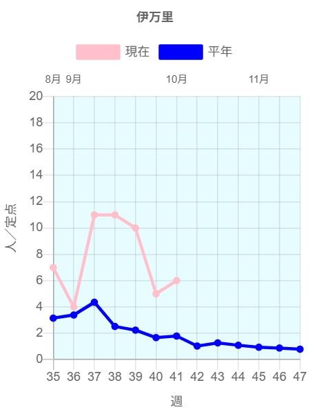 2025年第41週(10/6~10/12)の患者報告数は46名で、定点当たり報告数は増加(3.33→3.83)しました。小児が触れるものの消毒や手洗いの励行で感染予防に努めましょう。