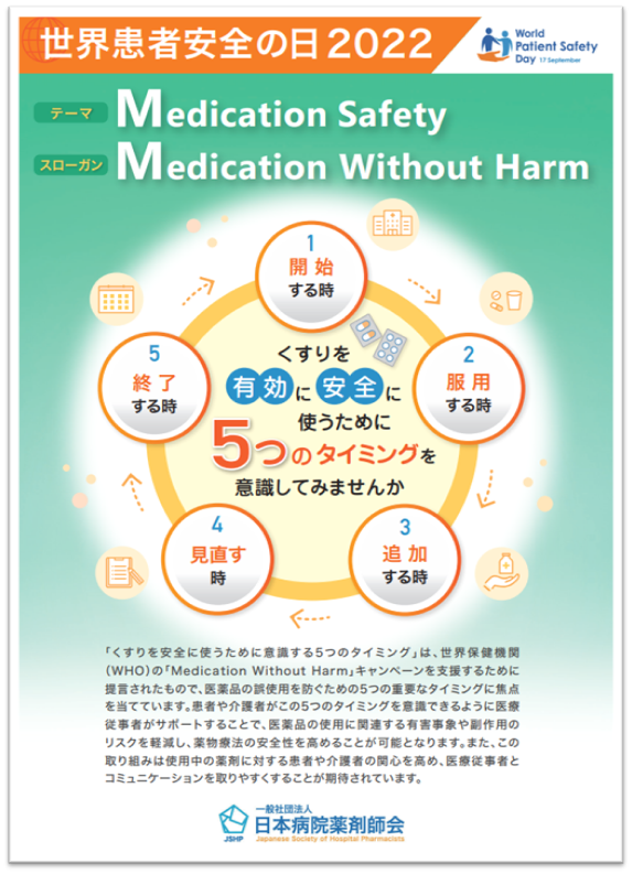 「世界患者安全の日」について、日本病院薬剤師会が一般用・医療従事者用の2種類のポスターを作成しました。