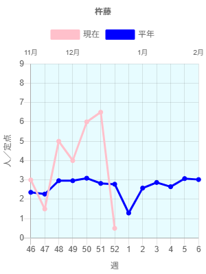 2025年第52週(12/22~12/28)の患者報告数は37名で、定点当たり報告数は減少(4.17→3.08)しました。うがいや手洗いの励行、手指消毒等で感染予防に努めましょう。