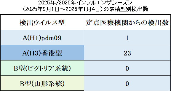 2025年/2026年インフルエンザシーズン(2025年9月1日~)の累積型別検出数