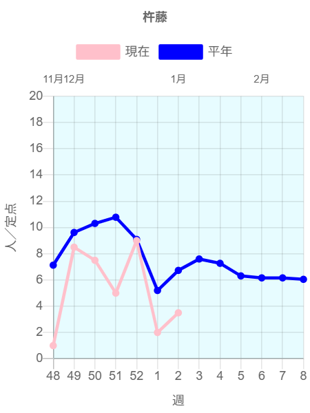 全国約2350ヶ所の小児科定点からの報告によると2026年第1週(2025/12/29~2026/1/4)の患者報告数3,708名、定点当たり患者数は1.90です。