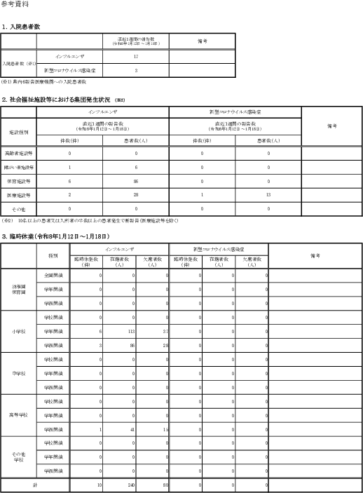 学級閉鎖等の状況