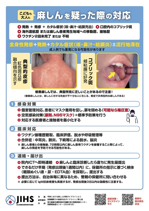 厚生労働省では、3月31日付けで予防接種のより積極的な推進等を周知したほか、国立健康危機管理研究機構(JIHS)にて作成された医療機関向けのリーフレットを、厚生労働省のウェブサイトにて公表しています。
